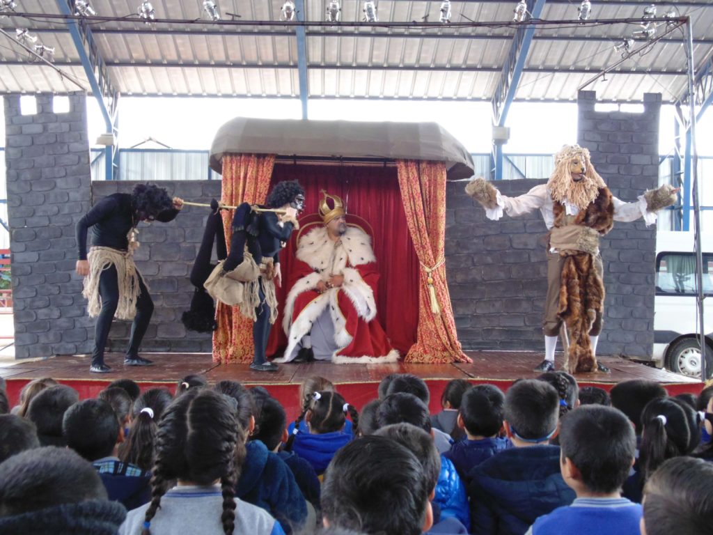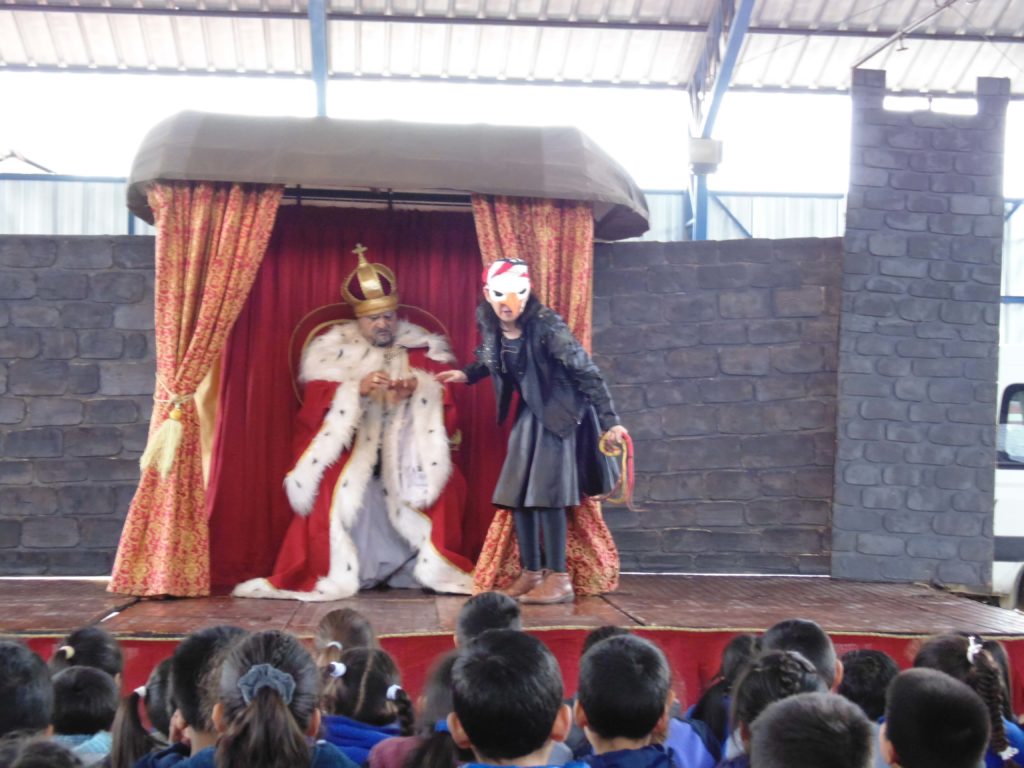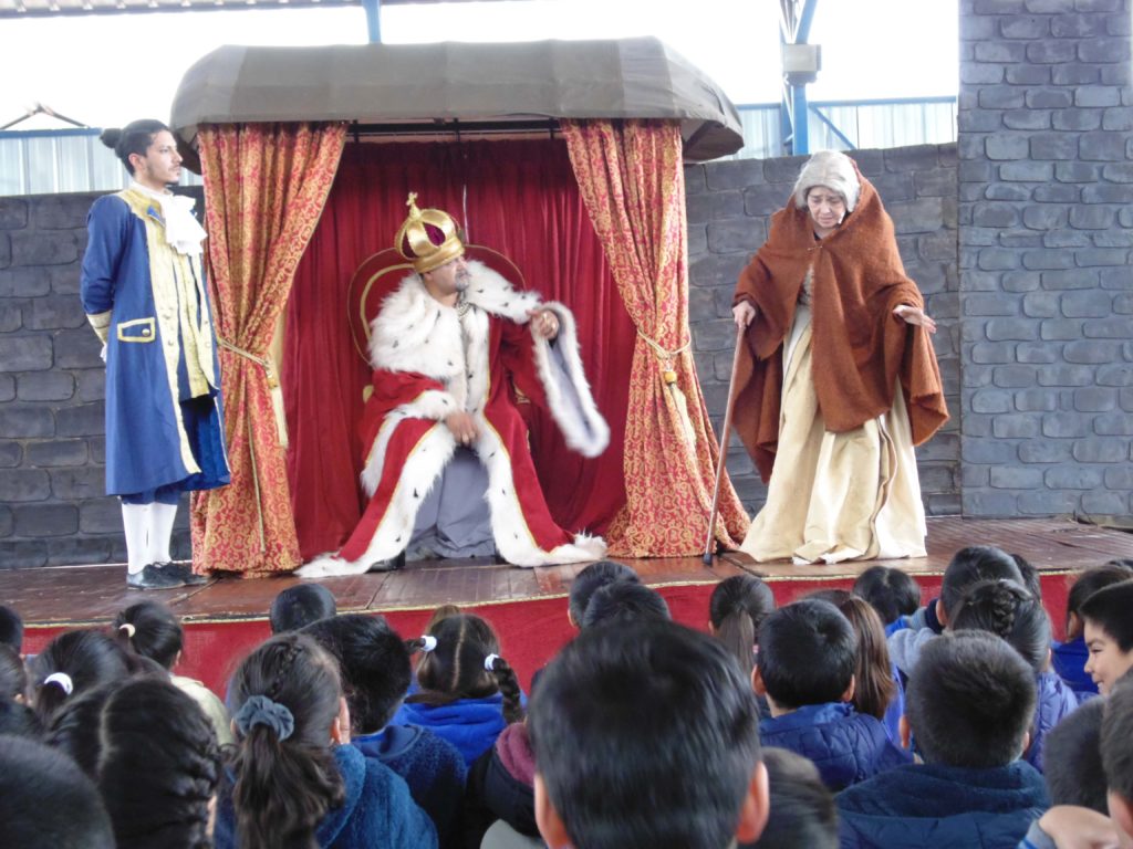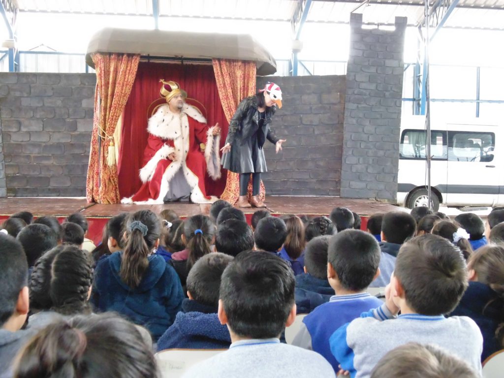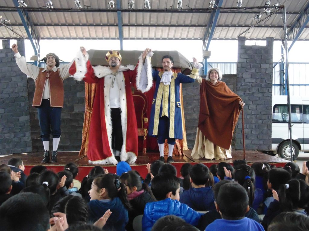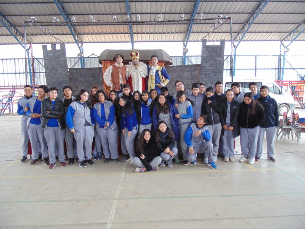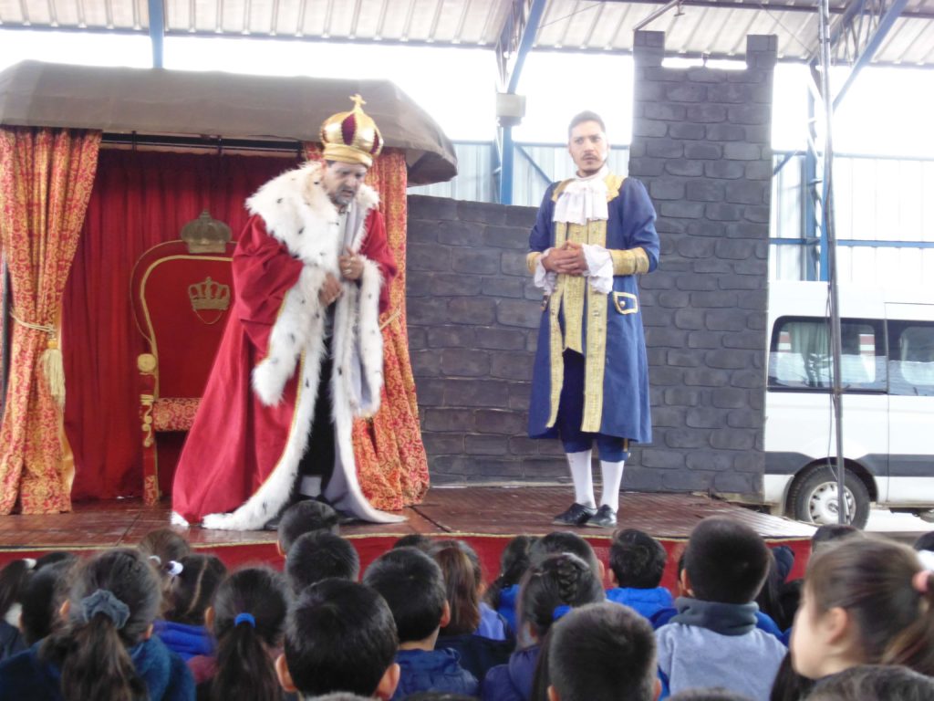 En el gimnasio de nuestro colegio se presentó la Compañía de Teatro Puerto de Sueños con la obra “UN REY PARA EL REY ”. Donde los alumnos desde Prekinder a 4° Medio, docentes , asistentes de la educación, padres y apoderados disfrutaron del entretenido montaje que tuvo por objetivo promover el valor de la resiliencia, valor fundamental y base para el desarrollo de la inteligencia emocional, que facilita una sana convivencia escolar.