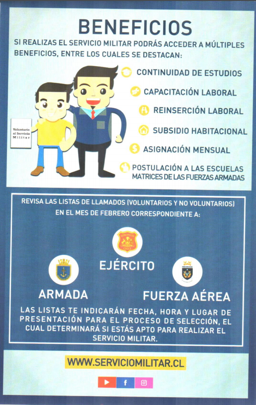 - Se invita a todos los jóvenes hombres y mujeres entre 17 y 24 años de edad que quieran inscribirse como voluntarios al Servicio Militar para que concurran al cantón de Reclutamiento de Ovalle, ubicado en calle Santiago 228 y manifiesten su voluntariedad.