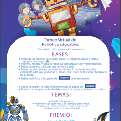 Me es muy grato poder invitarlos(as) a participar en el 1er Torneo Virtual de Robótica, donde nuestros niños y niñas podrán desarrollar toda su creatividad y al mismo tiempo aprender del mundo STEM junto a sus familias, una instancia donde además podrán compartir una experiencia con niños y niñas de toda Latino américa. ESTE TORNEO ES Read more about Torneo Virtual[…]